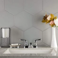 Lending a subtle touch of color, our Textile Basic Hex Silver 8-5/8 in. x 9-7/8 in. Porcelain Floor and Wall Tile instantly elevates spaces through a refreshing dose of geometric design. The light grey glaze is uniformly applied to create a striking matte surface that offers eye-catching beauty. Given the versatility of its format, this hexagon tile is unique yet simplistic enough to integrate into any design, ranging from traditional style renovations to modern home projects. Its impervious, frost resistant and durable features make this an ideal tile for residential indoor and outdoor use, including backsplashes, bathrooms, kitchens and patios. This tile is a perfect choice on its own or paired with other products in the Textile Collection. Tile is the better choice for your space. This tile is made from natural ingredients, making it a healthy choice as it is free from allergens, VOCs, formaldehyde and PVC.