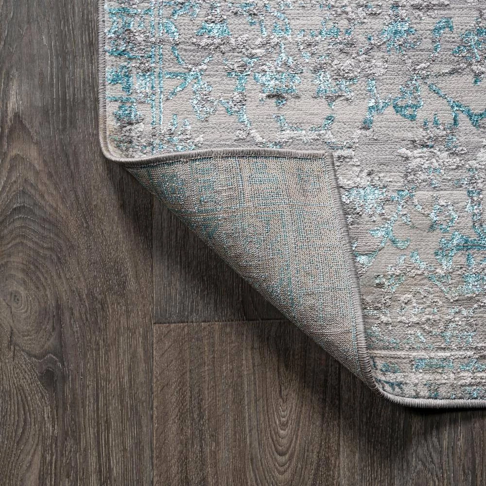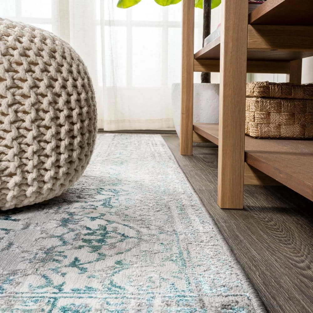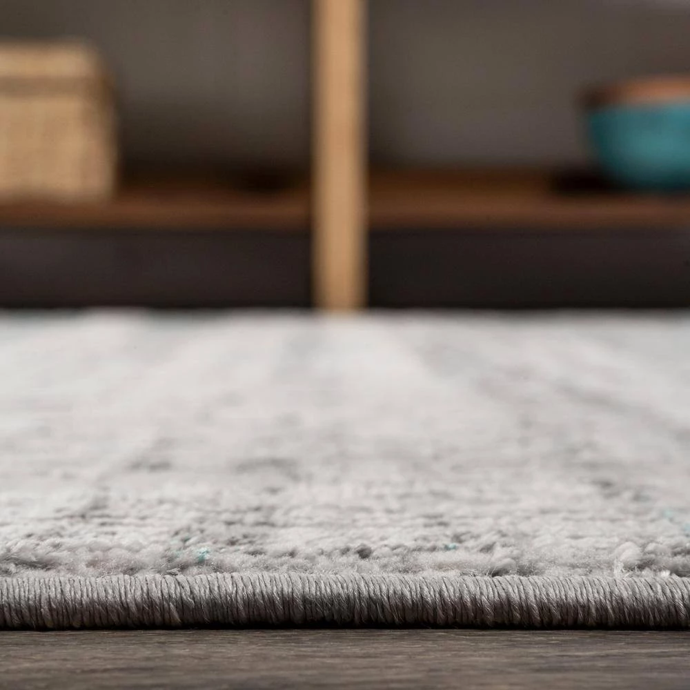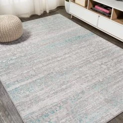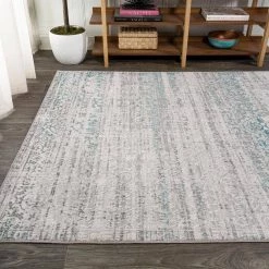 Mingled threads of turquoise, gray and ivory create a modern, abstract linear design with a mid-century look. This rug’s unique strie stripe pattern makes it perfect for homes with kids and pets. It’s the ideal centerpiece for a contemporary, coastal or minimalist interior.