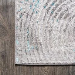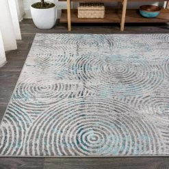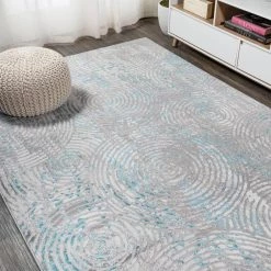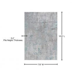 Inspired by the abstract designs of weathered concrete, this bold rug has a modern, coastal vibe. Deep turquoise and gray swirl across an ivory background. This unique rug’s overall pattern makes it perfect for homes with kids and pets. It’s the perfect centerpiece for a mid-century modern, contemporary, beach house or minimalist interior.