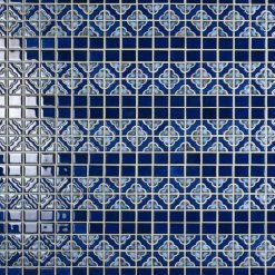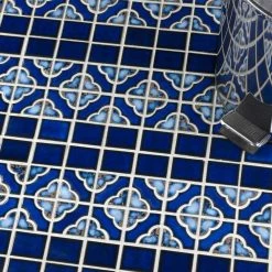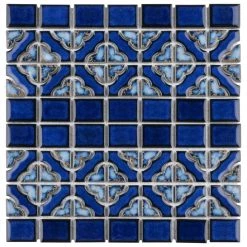 The Merola Tile Tower Cobalt Delta 12 in. x 12 in. Porcelain Mosaic Tile have a rustic look to it that will appeal to those looking for a tile with a striking shape and time-tested color profile. It features a mottled cobalt blue background, with lighter blue accents and clover shapes. The tile features a subtle texture and a light crackle effect to the glaze that adds interest without taking away from the design. Its porcelain base lends it to use either indoors or outdoors and can be used on walls or light-traffic floors.