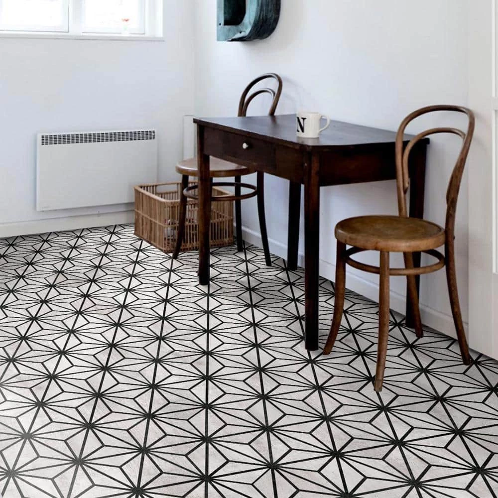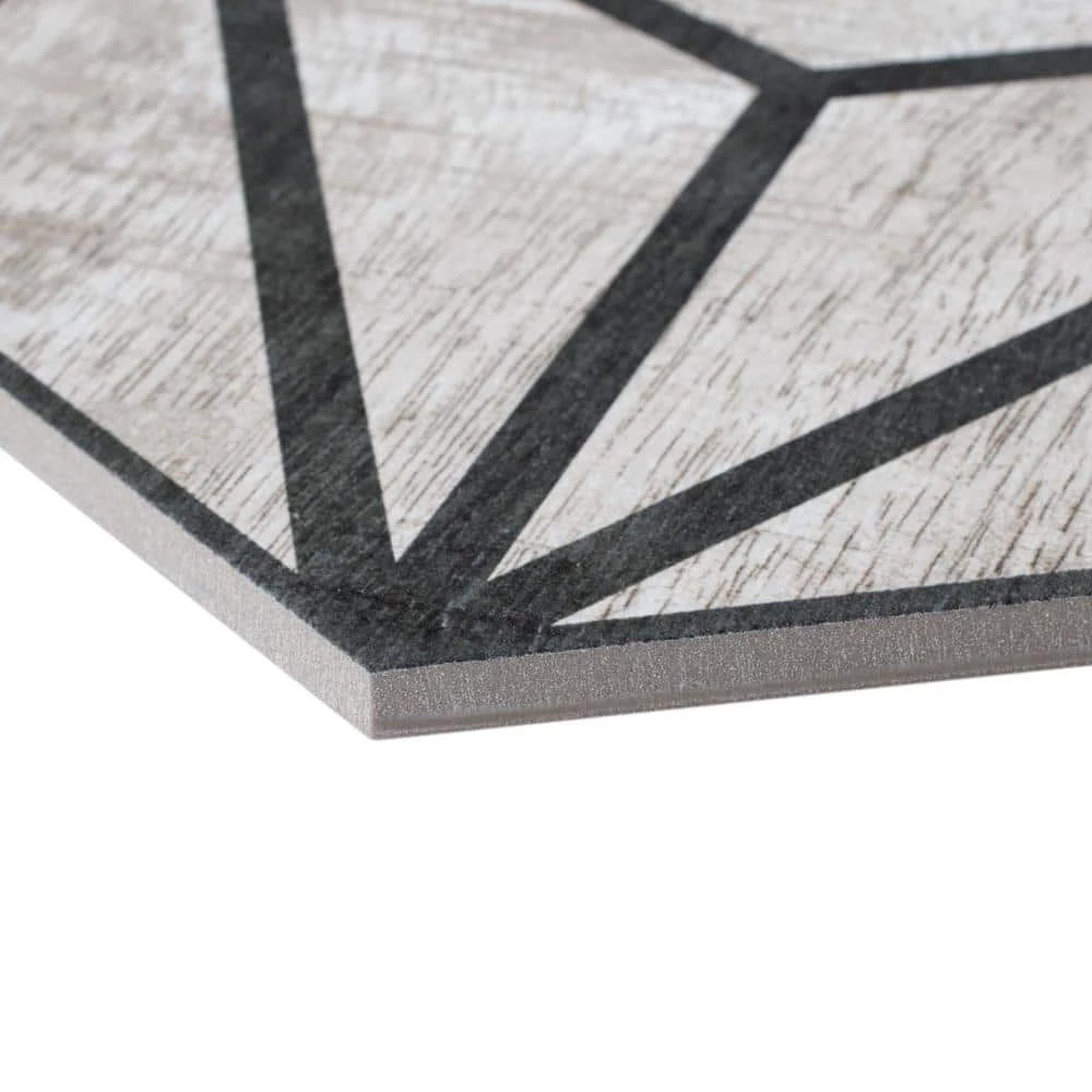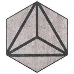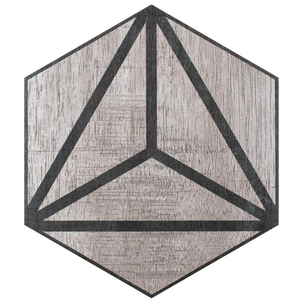 Mimicking the natural appearance of distressed wood, our Tribeka Hex Grey 8-5/8 in. x 9-7/8 in. Porcelain Floor and Wall Tile emulates rustic beauty with an abstract twist. This hexagon shaped tile transforms any space into a work of art through triangular patterns that when laid out, intertwine to create captivating designs reminiscent of art deco style. Faded charcoal black lines are set amongst a soft grey backdrop that features stunningly realistic woodgrains and variable fades. This tile features a gentle relief texture, lending added warmth and natural realism to surfaces. Available in 42 different print variations that are randomly scattered throughout each case, this tile offers a one-of-a-kind geometric look. Its impervious, ADA compliant and frost resistant features make this an ideal choice for indoor and outdoor installations including, kitchens, bathrooms and patios. Tile is the better choice for your space. This tile is made from natural ingredients, making it a healthy choice as it is free from allergens, VOCs, formaldehyde and PVC.
