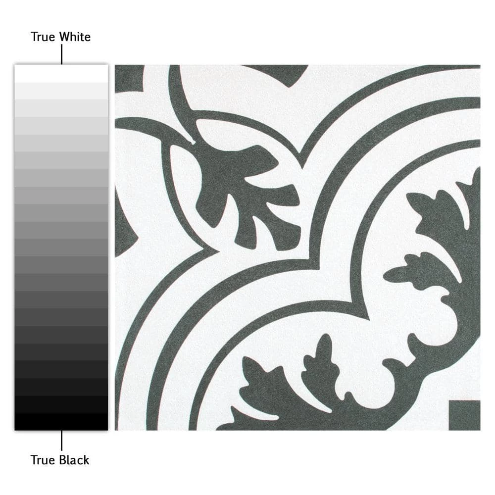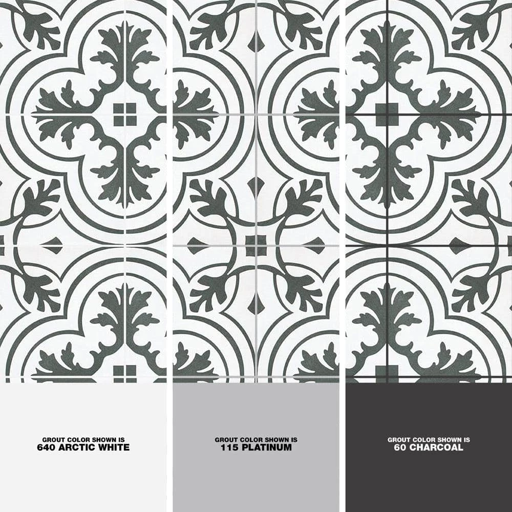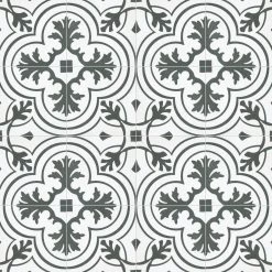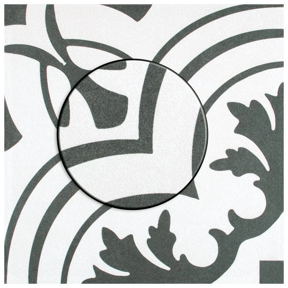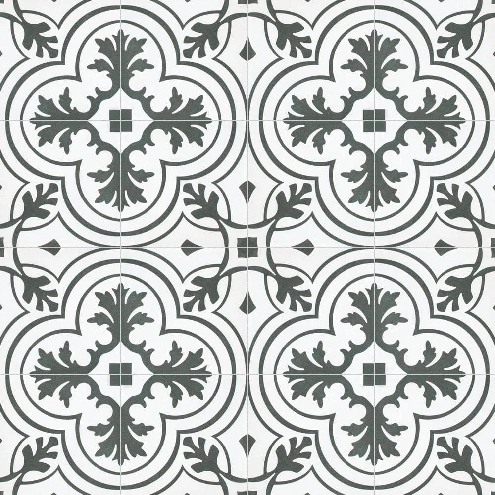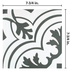 Inspired by artisan cement tiles, our Twenties Vintage 7-3/4 in. x 7-3/4 in. Ceramic Floor and Wall Tile captures the look of authentic encaustic tiles with a versatile ceramic body. This square tile features floral old-world patterns in charcoal black tones that are accented by simplistic arcs. Set on a snow white base glaze, the contrasting design features a weathered, speckled look, replicating the beauty of Spanish design and offering a unique blend of old-world style and modern appeal. This visually rich floor and wall tile can blend into virtually any design theme, ranging from contemporary projects to traditional installations. Its durable and frost-resistant features make this an ideal choice for indoor and outdoor installations including kitchens, bathrooms, backsplashes, showers, entryways, patios and fireplace facades. It is a perfect choice on its own or paired with other product in the Twenties Collection. Tile is the better choice for your space. This tile is made from natural ingredients, making it a healthy choice as it is free from allergens, VOCs, formaldehyde and PVC.