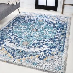 Alanya Ornate Navy/Cream 5 ft. x 8 ft. Medallion Machine Washable Indoor Area Rug by JONATHAN Y