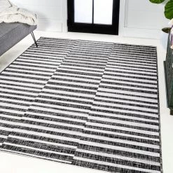 Sukie Black/Ivory 8 ft. x 10 ft. Modern Offset Stripe Indoor/Outdoor Area Rug by JONATHAN Y
