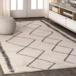 Xlendi High-Low Pile Moroccan Geometric Beige 8 ft. x 10 ft. Indoor/Outdoor Area Rug by JONATHAN Y
